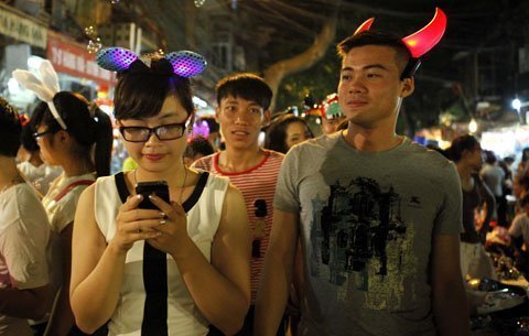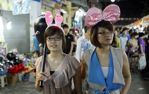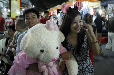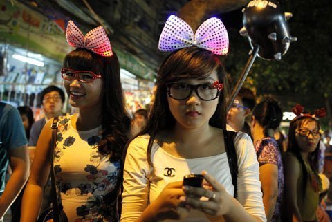 Các bạn trẻ mua đồ chơi trung thu trên tuyến phố đi bộ Hàng Ngang - Hàng Đào (Hà Nội).