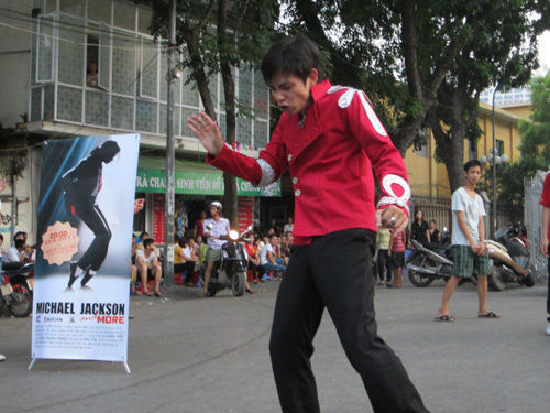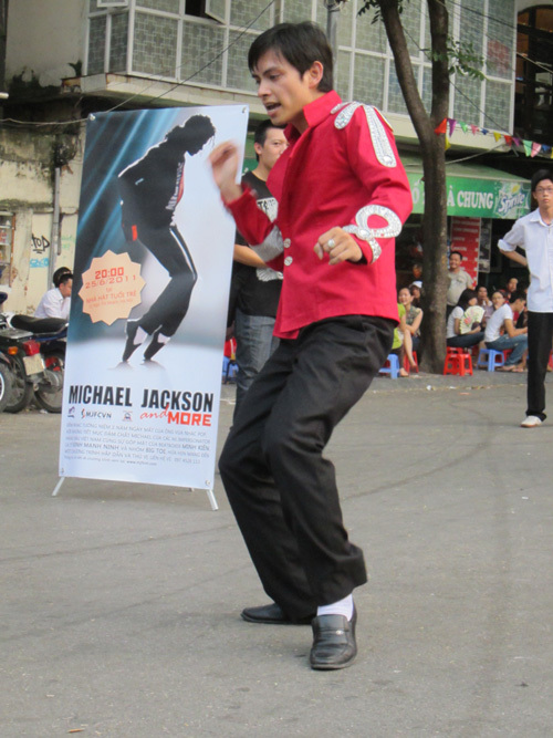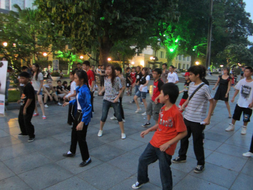 - Fanclub Michael Jackson tại Hà Nội đã trình diễn những màn Fashmob đẹp mắt trên nền nhạc của ông vua nhạc Pop tại 4 địa điểm - Vườn hoa Hàng Trống, Nhà Thờ Lớn, Hồ Gươm và tượng đài Lý Thái Tổ.
