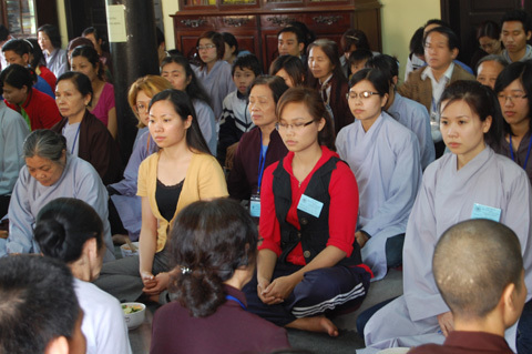 Khoa tu không chỉ thu hút sinh viên mà còn thu hút nhiều người đã đi làm. Dù bận rộn với công việc họ vẫn thu xếp thời gian tham dự. Anh Tài (Từ Liêm – Hà Nội) là người kinh doanh buôn bán bận rộn suốt ngày, nhưng khi biết có khóa tu anh vẫn bỏ công việc lên chùa. "Nhà mình cách chùa không xa nhưng vẫn muốn ngồi lại ăn cùng mọi người. Cuộc sống hàng ngày bận rộn, bon chen cũng cần có những giây phút "quên hết tất cả" như thế này", anh Tài nói.