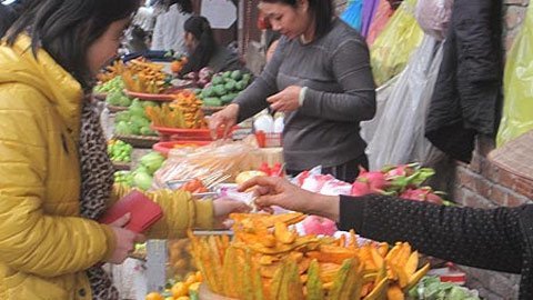 nào cũng thấy các gánh hàng nhỏ với đủ các loại quả như xoài, táo, dứa... được