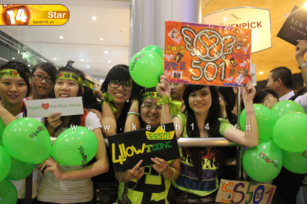 Theo lịch trình thì đúng 22h20 tối ngày 10/8, Kim Hyun Joong sẽ đặt chân xuống sân bay Tân Sơn Nhất. Hàng trăm fan của mỹ nam xứ sở Kim chi trong đồng phục xanh lá cây đã có mặt tại sân bay ngay từ chiều với bong bóng xanh và poster chào đón hoành tráng.