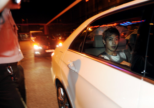 Kim Hyun Joong rời khỏi đám đông với khuôn mặt khá mệt mỏi.