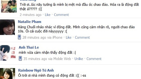 | Facebook tràn ngập thông tin về động đất (Ảnh kenh14) |
