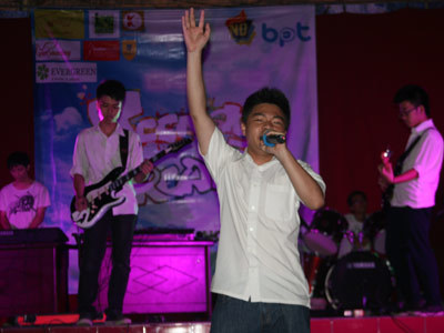 | Ban nhạc với phần đông là các bạn học sinh lớp 12 của trường đang biểu diễn ca khúc “It’s my life” tặng bạn bè, thầy cô trước ngày chia tay trường. |