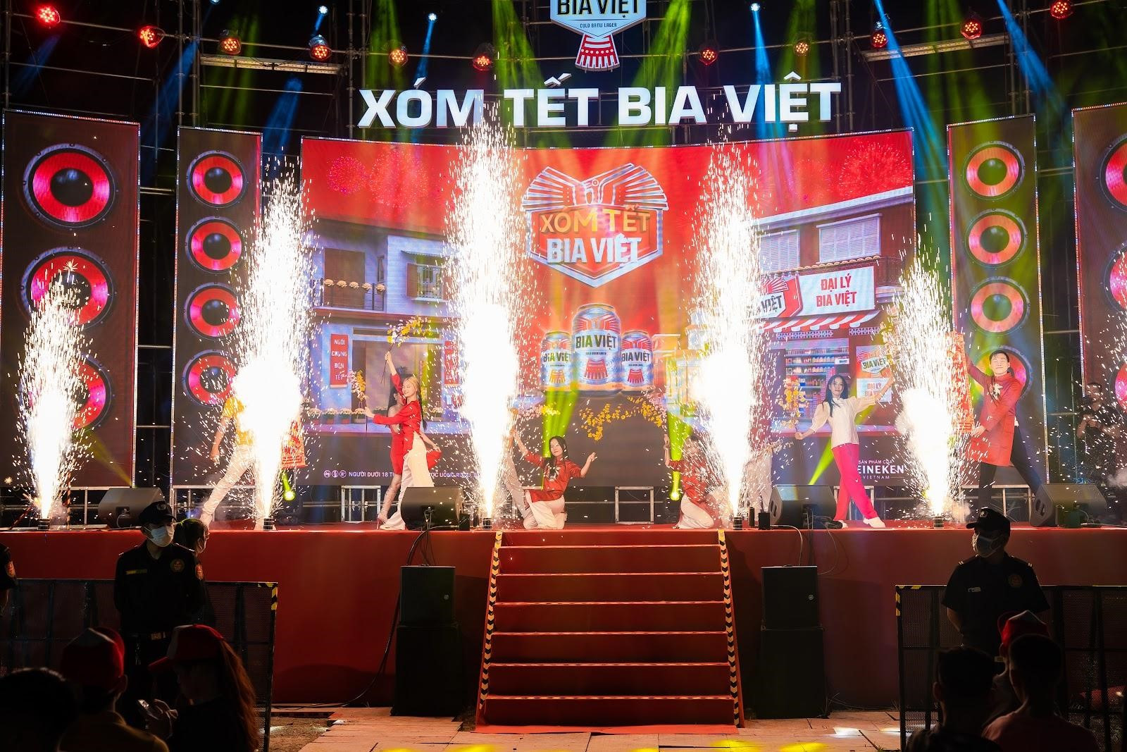 Ngoài ra, “Xóm Tết Bia Việt” còn ghi dấu ấn trong lòng khán giả bằng việc biến tấu những trò chơi dân gian trong ngày Tết cổ truyền, tạo nên ấn tượng “vừa lạ vừa quen”, thu hút người tham gia sôi nổi và đông đảo, mang về những phần thưởng hấp dẫn và trải nghiệm thú vị. Những trò chơi như “Vớt đòn bánh Tết” hay “Gắp chung món Tết” được tổ chức theo đội, nhóm yêu cầu người chơi phải có tinh thần đồng đội, tạo cơ hội gắn kết tình cảm và giao lưu, chia sẻ giữa những người tham gia, giúp không khí “ngồi chung” ở những “Xóm Tết” càng thêm phần xôm tụ, chan hòa, thân thương.