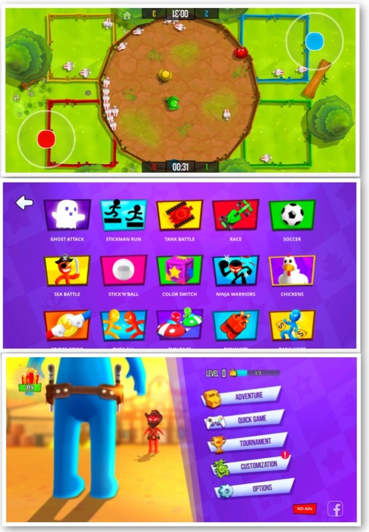 Đây cũng là một tựa game hỗ trợ chơi ngoại tuyến không cần Internet và hỗ trợ nhiều người cùng chơi nên sẽ thích hợp để giải khuây cho nhóm bạn trong lúc rảnh rỗi và muốn cùng nhau đua tài. 2 Player Games tập hợp đến 37 mini game đa dạng từ đua xe một chạm, mê cung, tô màu, đá bóng...
