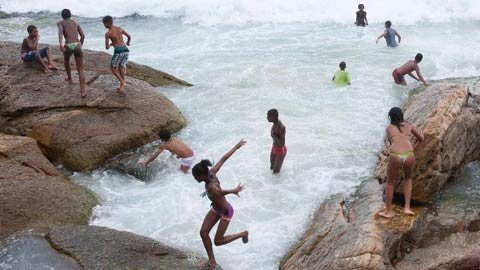 Vào đợt nắng nóng kỷ lục này, bãi biển Arpoador luôn đông nghịt người tới tắm. (Ảnh: THX)