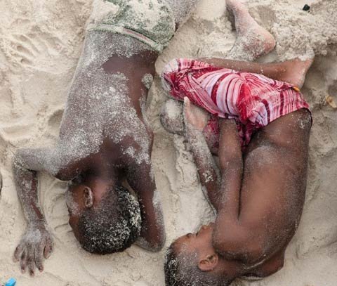 Những em bé Brazil ngủ vùi trong cát trắng. (Ảnh: THX)