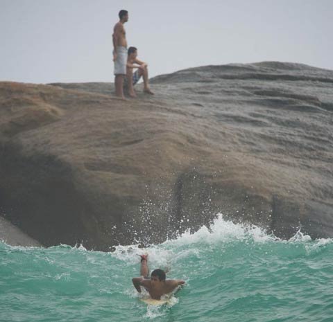 Người dân đổ xô tới bãi biển Arpoador ở Rio de Janeiro hôm 29/12. Thành phố này đã phải chịu cái nắng nóng này trong suốt 20 ngày vừa qua. (Ảnh: THX)