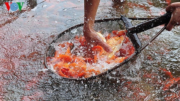 Cứ vào những ngày cận kề tiễn ông Táo về chầu trời, làng Thủy Trầm xã Tuy Lộc, huyện Cẩm Khê, tỉnh Phú Thọ - thủ phủ nuôi cá chép đỏ lại nhộn nhịp hẳn lên.