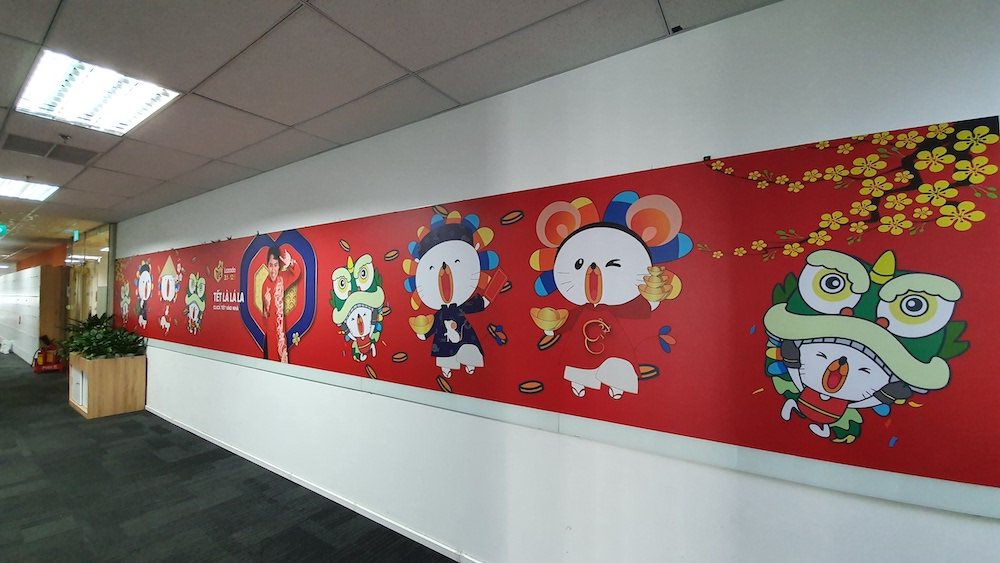 Ngoài đêm tiệc đáng nhớ, trang thương mại điện tử lớn của Đông Nam Á cũng trang trí đậm chất Tết truyền thống tại văn phòng công ty.
