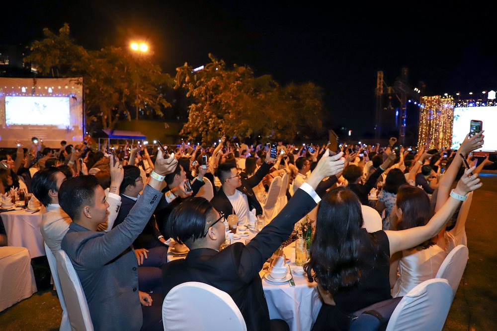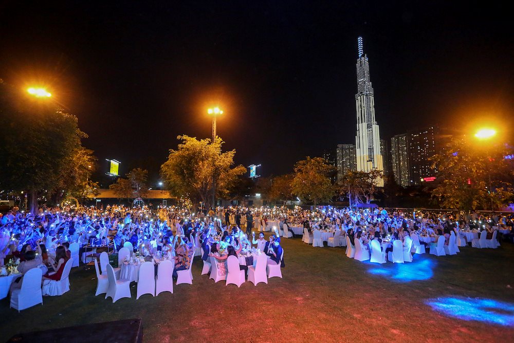 Tiệc của Shopee với hình ảnh Landmark81 phía xa. |
