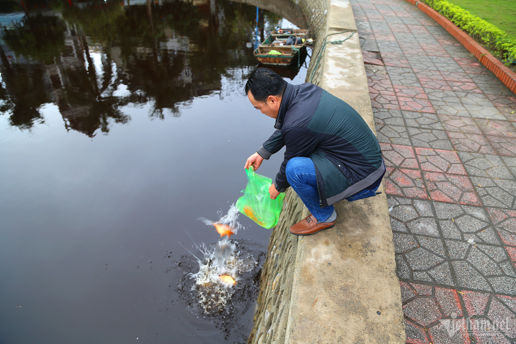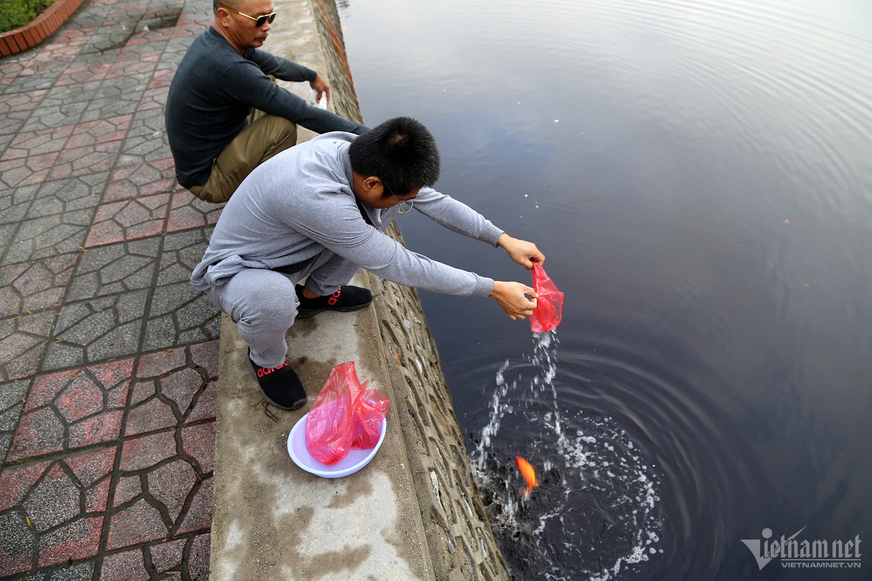 Sáng 2/2 (tức 23 tháng Chạp), bắt đầu từ 8h sáng, người dân đã đem cá chép cúng ông Công ông Táo ra hồ điều hòa Yết Kiêu, phường Yết Kiêu, TP. Hạ Long, Quảng Ninh để thả.