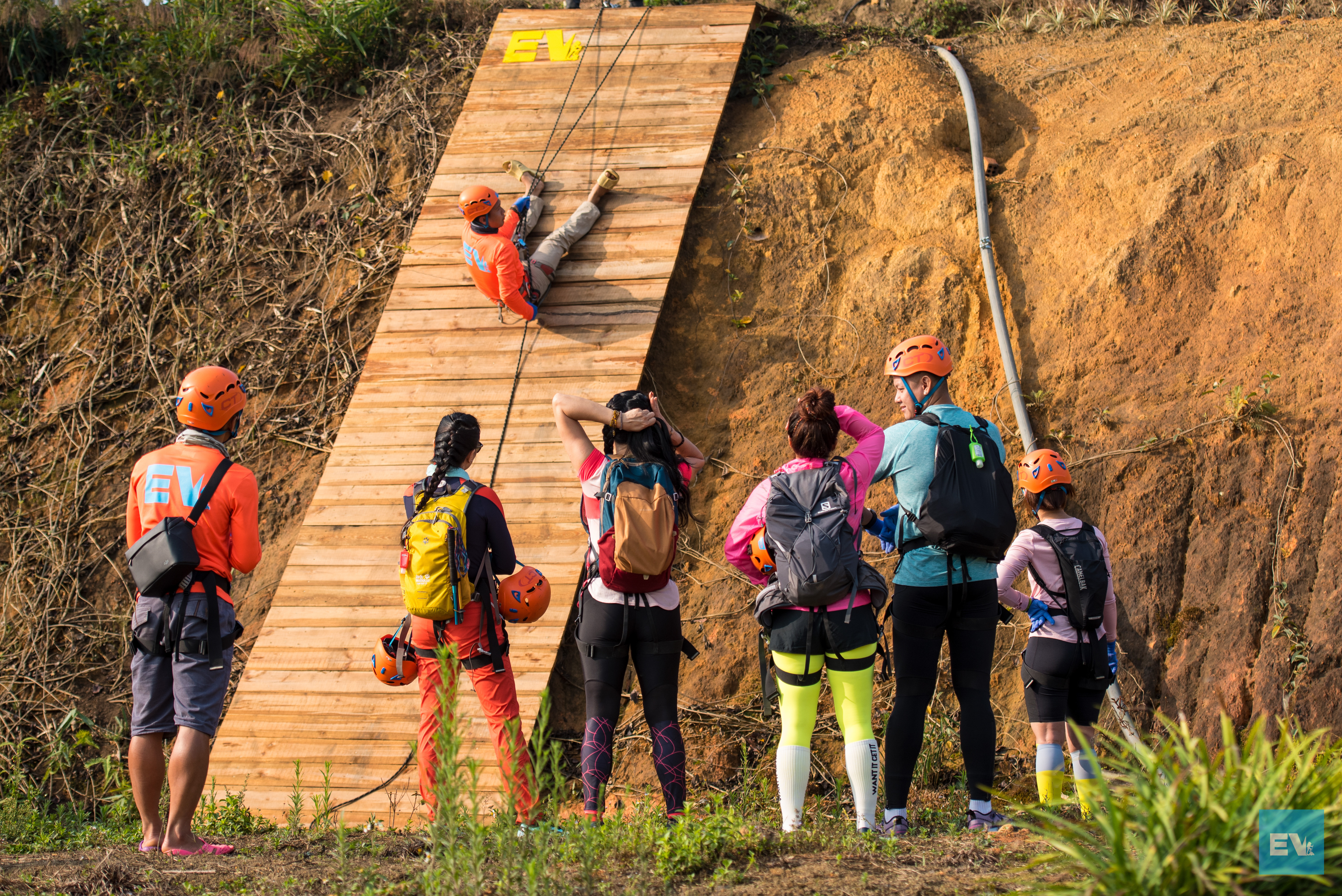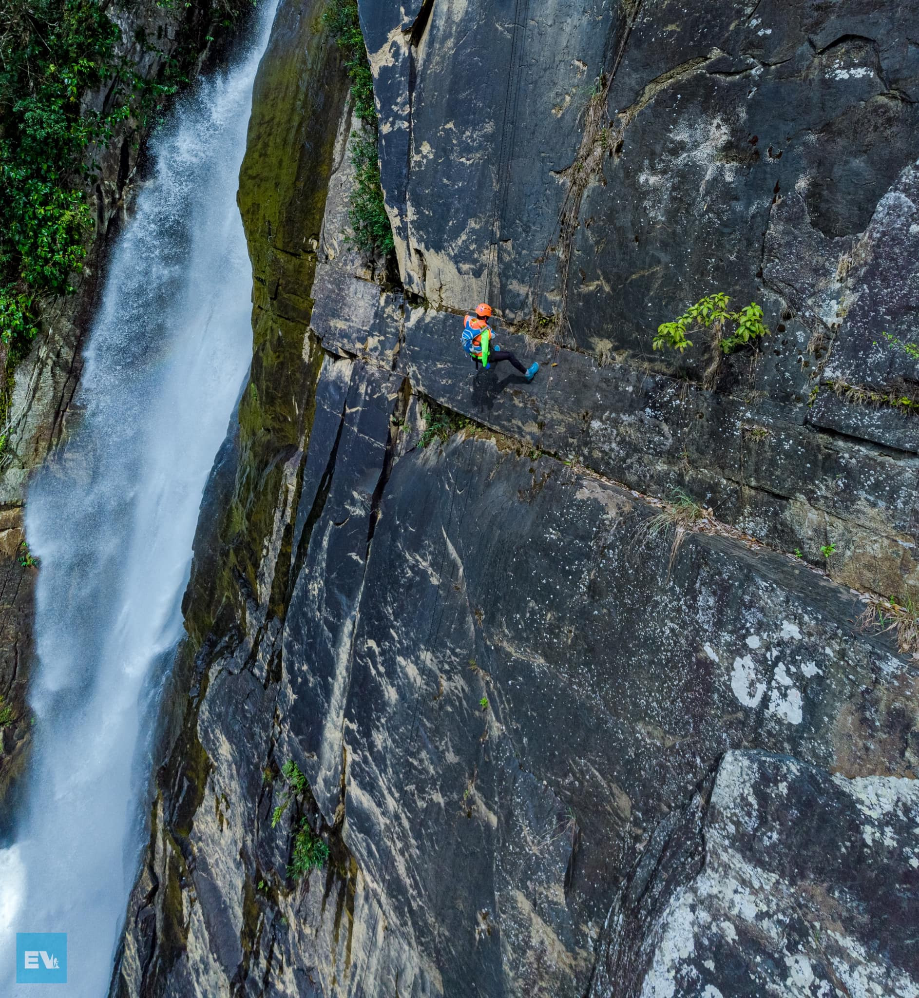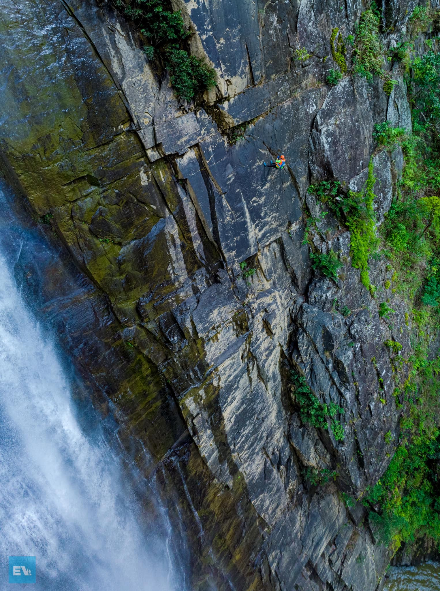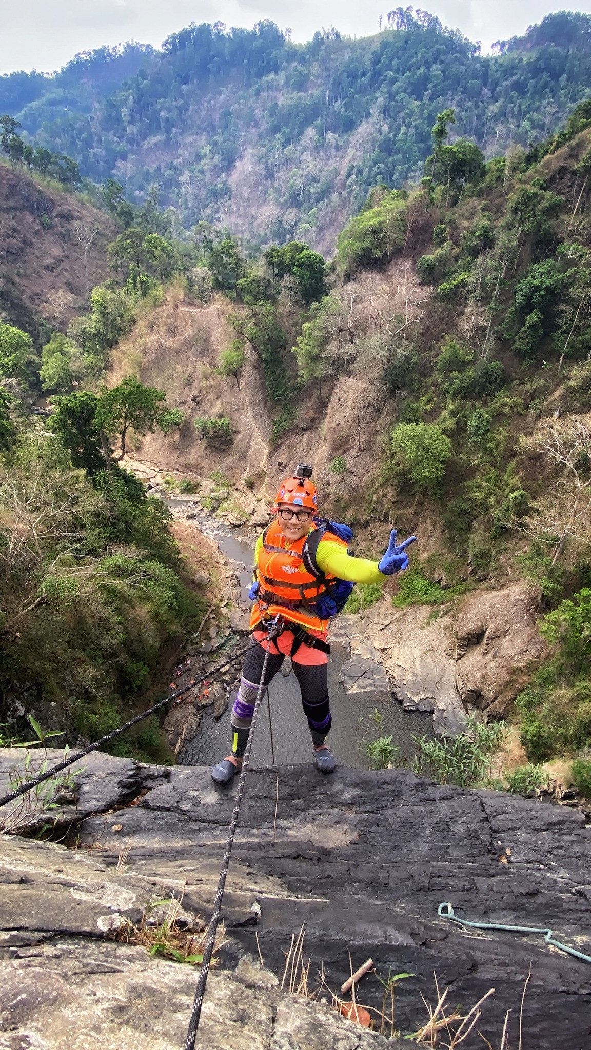Tới phiên mình, là người kế cuối. Lúc này trời sắp mưa, mình cứ sợ đang xuống thì mưa. Thế nhưng chỉ cần vượt qua được cảm giác hồi hộp ban đầu với khoảnh khắc quyết định: bước lùi bước đầu tiên và ngã mình xuống thác, thì sau đó có thể tận hưởng sự phấn khích của những bước đi theo chiều thẳng đứng trên vách đá.