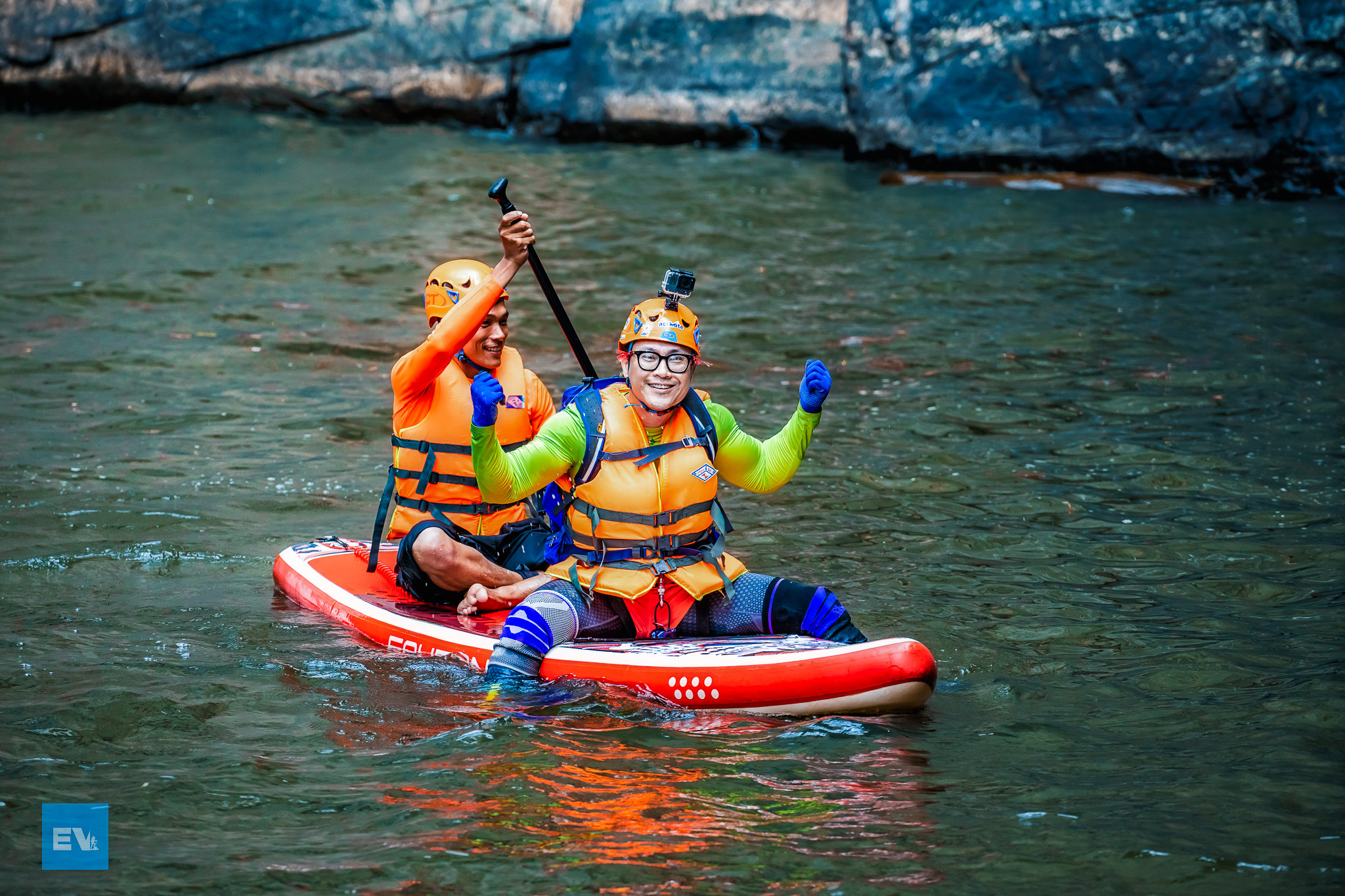 Thật ra chơi trò này không khó và rất an toàn vì dây đã được neo ở trên và giữ chắc rồi, cho dù mình thả cả 2 tay không giữ dây thì mình cũng không rơi được. Chỉ là thắng được cảm giác sợ độ cao thôi. Mình đi xuống hơi nhanh, bình thường người ta đi 15 phút, ai chậm lắm thì đi 30 phút, còn mình đi có 7 phút vì lúc quen cảm giác rồi mình thả dây cho nó chạy tự do luôn để tăng tốc độ lao xuống coi sao. Tới khi đáp xuống SUP thì mới thấy tiếc vì sao mà nhanh quá, muốn được chơi thêm nữa.“ Anh Vũ chia sẻ.