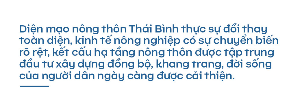Bắt tay thực hiện Chương trình mục tiêu quốc gia về xây dựng NTM, là tỉnh có xuất phát điểm thấp, song Thái Bình là 1 trong 3 tỉnh đầu tiên trong cả nước được Thủ tướng Chính phủ công nhận hoàn thành nhiệm vụ xây dựng NTM. Diện mạo nông thôn Thái Bình thực sự đổi thay toàn diện, kinh tế nông nghiệp có sự chuyển biến rõ rệt, kết cấu hạ tầng nông thôn được tập trung đầu tư xây dựng đồng bộ, khang trang, đời sống của người dân ngày càng được cải thiện.