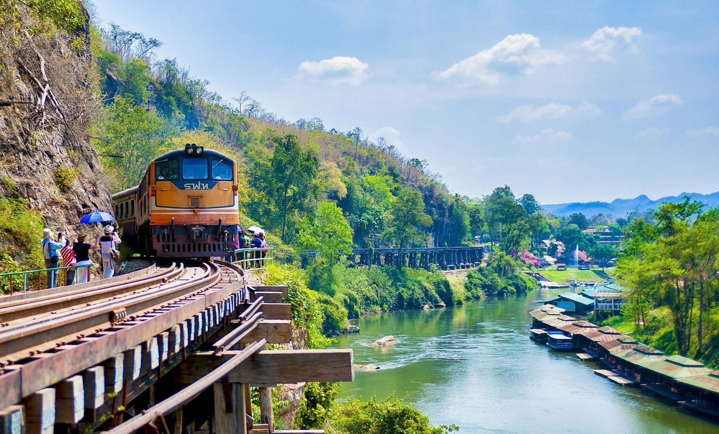 Ngoài ra, đoàn còn có cơ hội tham quan cầu sông Kwai; khám phá đường sắt Tử thần - công trình lịch sử bi tráng thời Chiến tranh Thế giới thứ 2; leo lên 157 bậc thang đến với ngôi chùa linh thiêng Wat Tham Suea, hay trải nghiệm văn hóa Nhật Bản ở công viên Tomi Edo.