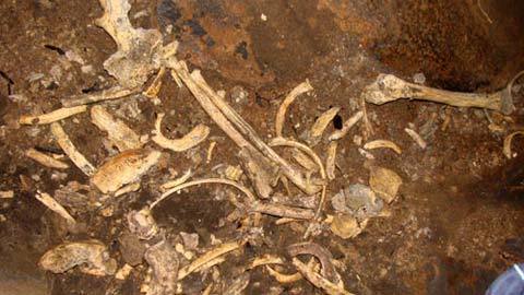 | Những đống xương nằm trong động không biết bao nhiêu năm rồi. |