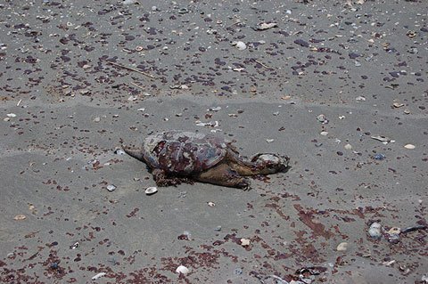 Một con rùa biển Kemp’s Ridley đã chết ngạt vì dầu. Ảnh: NOAA