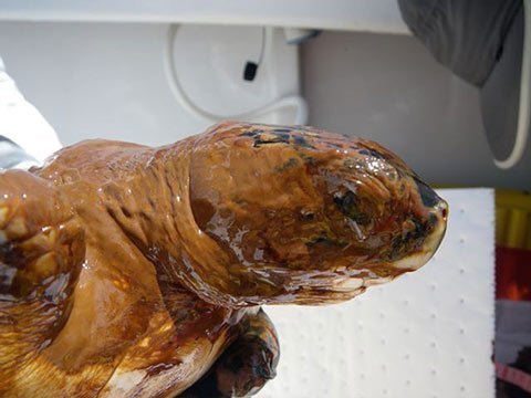 Dầu bám dày trên cơ thể của rùa Kemp’s Ridley (Lepidochelys kempii). Ảnh: NOAA.