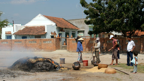 Không dùng lò nung, gốm Bàu Trúc được nung theo cách riêng bằng rơm và củi ngay ngoài trời.