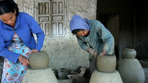 Không dùng bàn xoay để nặn gốm, những phụ nữ Bàu