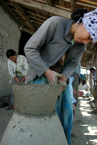 Trúc vẫn trung thành với cách làm truyền thống, người thợ gốm sẽ di chuyển