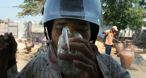 bảo hiểm có kính che mặt để chống chọi lại cái nóng cháy da, cháy thịt