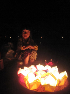 Đầy ám ảnh với du khách là những em bé bán đèn hoa đăng. Nhiều em từ bên kia bờ