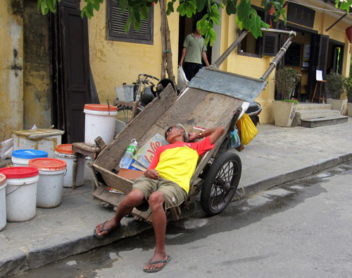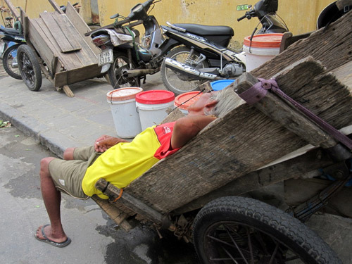 người đàn ông khác ngủ trưa ngon lành ngay trên chiếc xe cải tiến