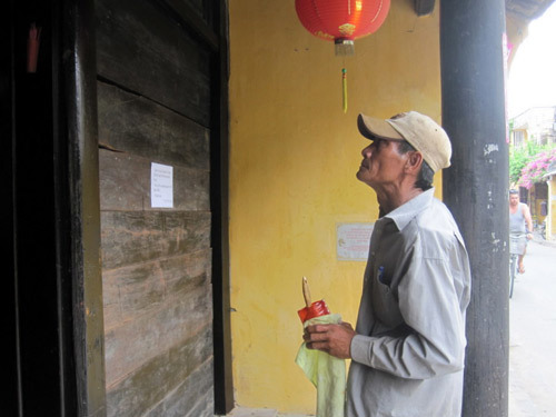 vài người thợ đang miệt mài sơn sửa lại ngôi nhà cổ. Để những ngôi