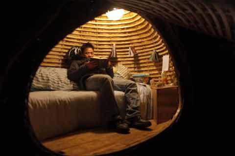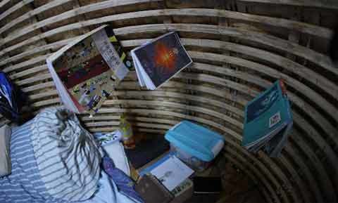 ty, nơi anh đang làm việc, Đới Hải Phi dựng "nhà trứng c"hủ yếu bằng tre với