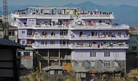 (Ngôi nhà cao 4 tầng với 100 phòng của đại gia đình ông Ziona)