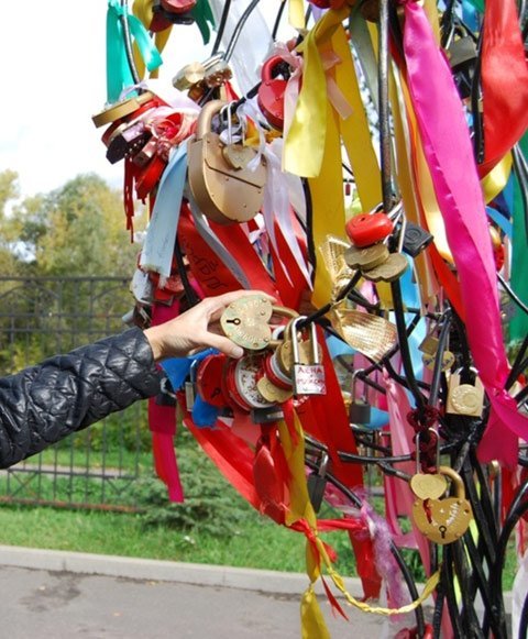 Ivanovo cũng là vùng có tỷ lệ thành lập gia đình cao ở Nga. Theo phong tục cổ truyền, khi cưới, các cô dâu buộc dải băng có lời cầu nguyện cho hạnh phúc gia đình và mắc ổ khóa vào cây Hạnh phúc. Khóa càng to thì may mắn sẽ càng nhiều (Nguồn ảnh nuocnga.net).