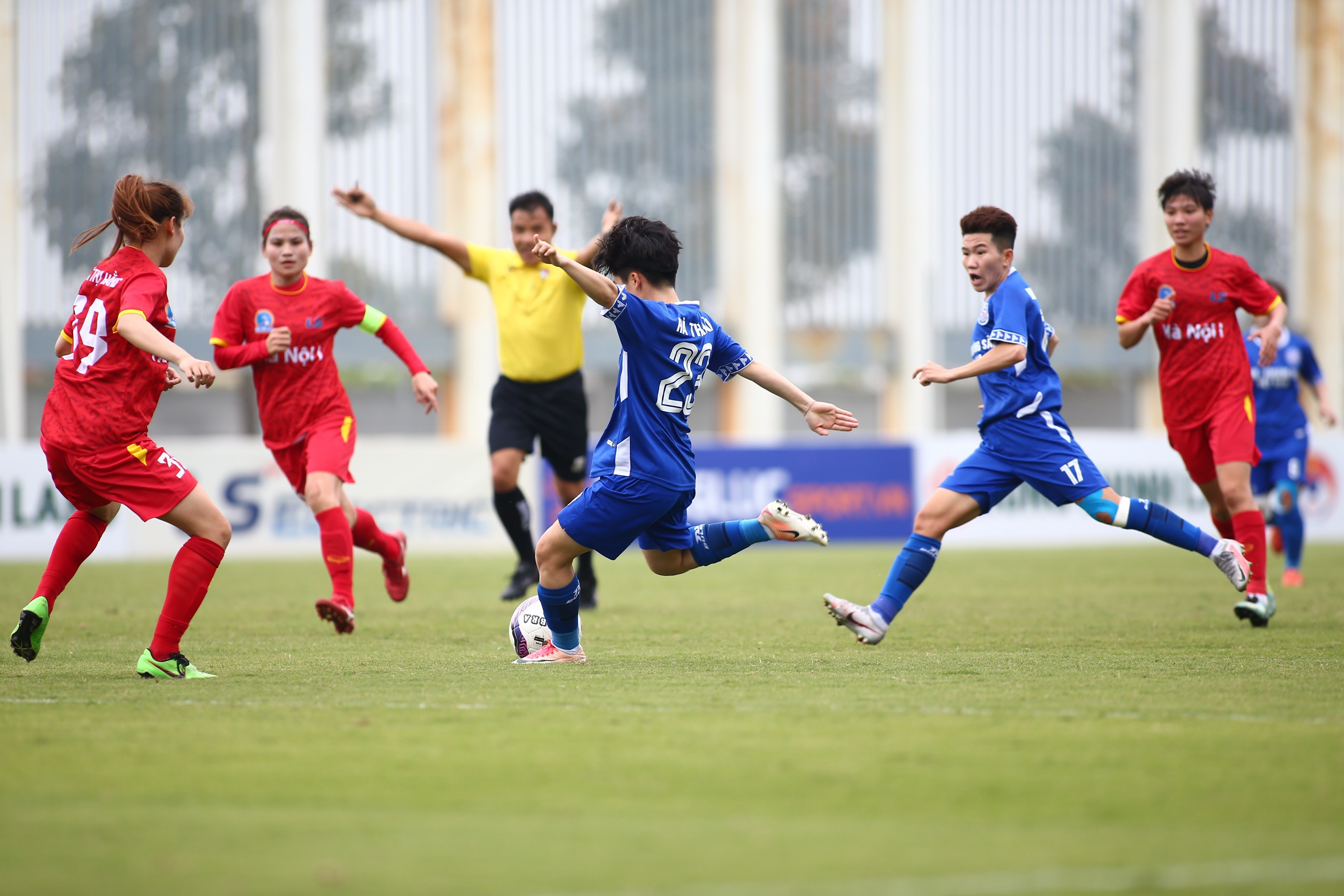 Đến phút thứ 26, Hà Thị Nhài tỏa sáng với dứt điểm tinh tế, đưa bóng về góc cao, đánh bại thủ môn Kiều Oanh, rút ngắn tỷ số còn 1-2 cho Than KSVN.