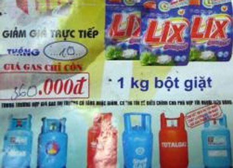 Theo như tờ rơi quảng cáo của một nhà phân phối gas Petrolimex ở khu Phúc Xá - Ba Đình phát tại khu vực Nghi Tàm, Tây Hồ vào ngày 19/10 thì gas các loại có giá bán 360 nghìn đồng/bình, còn tặng thêm 1kg bột giặt Lix.