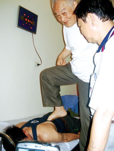 khỏe, yếu để trị bệnh. Tay ông rà từ đầu xuống chân kiểm tra, chỗ nào bệnh nhân