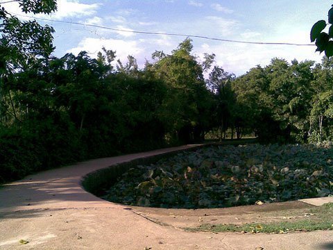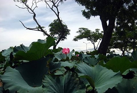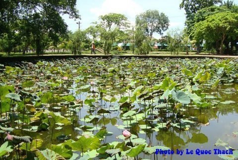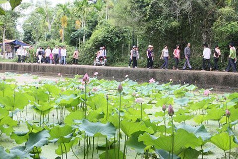 | Đường vào Làng Sen quanh co với những ao sen ngát hương thơm... |