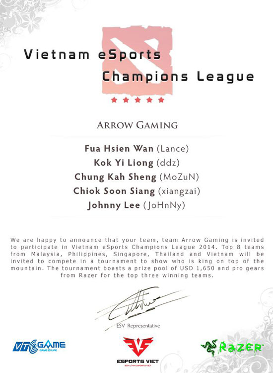 VECL 2014 là giải đấu DotA 2 do ESV đứng ra tổ chức với sự bảo trợ của VTC Game và hãng Gaming gear nổi tiếng trên thế giới Razer. Giải đấu sẽ có sự tham gia của 4 top team DotA 2 khu vực Đông Nam Á đó là: Arrow Gaming (đương kim vô địch vòng loại The International 4 khu vực Đông Nam Á); Mineski (hạng 3 vòng loại The International 4 khu vực Đông Nam Á), Mith.Trust và Scythe.Gaming.