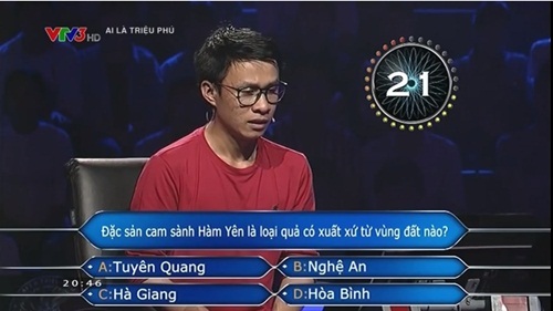 Anh liên tục trấn an bạn mình bằng giọng điệu từ tốn. Ngay đến khi anh Nam giục giã “Nói nhanh đi, hết giờ rồi”, người trợ giúp vẫn rất điềm tĩnh, trả lời: “Nghe rồi, đang nhập”. Cuối cùng, anh Nam đành ngậm ngùi mất đi một sự trợ giúp mà chưa có đáp án đúng.