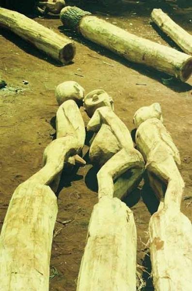Tôi đã có hạnh phúc chứng kiến họ làm tượng. Nắm chắc chiếc rìu, nhìn sâu, thăm thẳm sâu vào khúc gỗ, bất động, trầm ngâm rất lâu, rồi đột ngột và quả quyết, họ vung rìu, hạ từng nhát mạnh mẽ, dứt khoát, quyết đoán, không phải chạm khắc mà là tước đoạt, giành lấy, phá tung một lớp vỏ tù túng nào đấy, lột ra, giải phóng ra từ thân gỗ ra hình hài của sự sống mà rõ ràng họ đã nhìn thấy, đã tin, đã biết chắc vốn giấu sẵn, bị giam hãm từ bao giờ trong ấy. Rất gọn, rất nhanh. Không do dự, không tính toán.