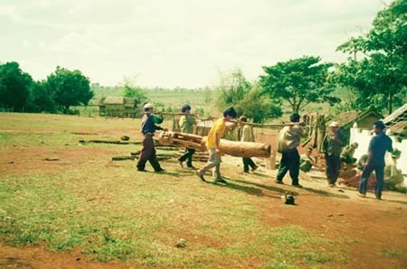 Thật lạ lùng: cả một thế giới rộn rã, sống động, chen chúc, vui tươi. Cả một xã hội. Cái gì cũng có, cái gì có trong cuộc đời xao động hằng ngày thì đều có ở đấy, càng rộn rịp hơn vì tập trung hơn, lại đặc biệt cách điệu nên đậm hơn... Và nhiều nhất, đẹp nhất, say sưa nhất là cảnh phồn thực công nhiên và ồn ào, niềm vui tươi rực rỡ của con người tạo nên sự sống, cuộc hoài thai rạng rỡ của người đàn bà đẻ ra thế giới, niềm khoái lạc của hai giống sáng tạo nên cuộc đời... Sao vậy? Sao lại công phu và tài hoa làm ra cả một thế giới chói lòa ánh sáng của sự sống đến thế để rồi lại đem đặt vào nơi lẽ ra phải tang tóc như thế này? Những con người này nghĩ gì và muốn nói gì về sự sống và cái chết? Về cõi bên này và cõi bên kia, về ý nghĩa của người trong dòng chảy không cùng của tự nhiên?... Chỉ xin nói thêm điều này: lễ bỏ mả, lần tiễn đưa cuối cùng người đã chết đi khỏi thế giới chúng ta, tang lễ thật sựở trên này, thường vào tháng Ba - "tháng Ba con ong đi lấy mật" - là lễ hội lớn nhất, đông đảo nhất, vui nhất ở Tây Nguyên. Lạ không?...