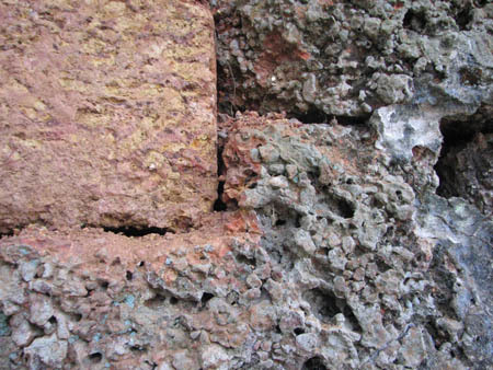 Đoạn tiếp giáp giữa đá ong gốc và đá ong mới(khu vực sát cổng Bắc)