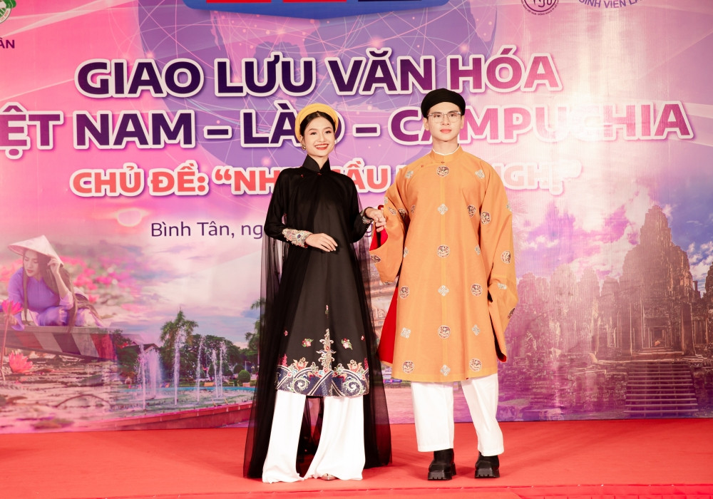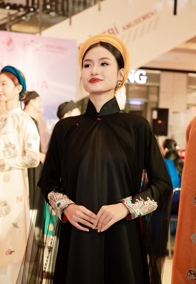 Tại sự kiện, Thanh Hà chọn cho mình áo dài đen truyền thống phối voan mỏng, toát lên vẻ dịu dàng. Cô cho biết luôn ưu tiên chọn những thiết kế như yếm, áo dài trong các chương trình mang tính chất giao lưu văn hóa.