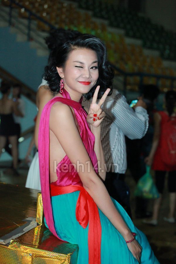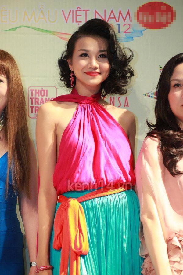 Giám khảo Thanh Hằng trông nổi bật tại chung kết Siêu mẫu Việt Nam 2012 với bộ đầm khoét lưng lớn, để lộ hình xăm ấn tượng.