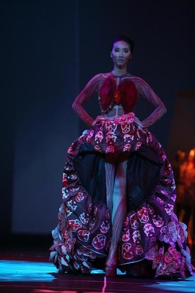 Màn trình diễn kinh dị của Thanh Hằng là khởi đầu ấn tượng cho phần giới thiệu bộ sưu tập mang tên “No 4 – 2011” của nhà thiết kế Công Trí, trong đêm thời trang Đẹp Fashion Show diễn ra vào tối ngày 15/10 tại Nhà thi đấu Nguyễn Du TP.HCM.