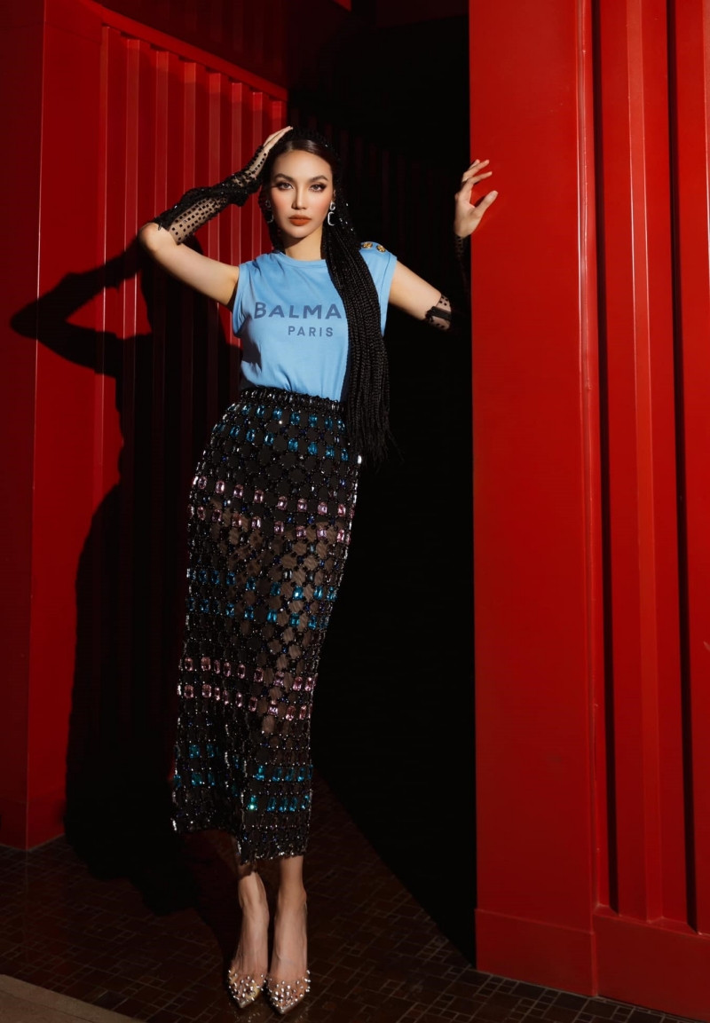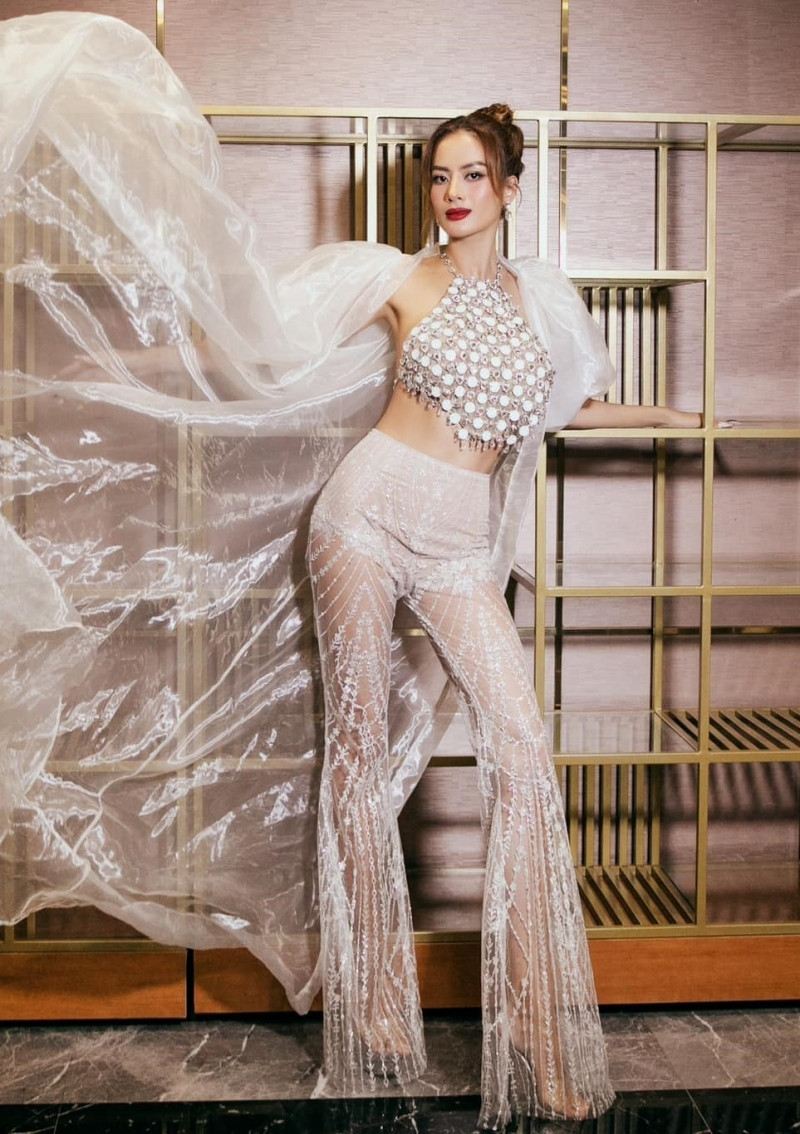 Thanh Hằng khoe thần thái và đôi chân dài thương hiệu ''đáng đồng tiền bát gạo'' trong chiếc váy ngắn kèm áo lông với phần vai độn quyền lực và sang chảnh. Cô phối cùng giày satin mũi nhọn đồng màu.Mai Ngô gợi cảm trong chiếc váy hai dây to bản được đính kết họa tiết hình tròn đẹp mắt. Người đẹp phối cùng boots da ánh bạc, búi tóc cao và trang điểm nhấn vào đôi mắt sắc sảo.Lan Khuê sang chảnh khi chọn phối áo thun hàng hiệu với chân váy lưới dáng bút chì được đính đá ton-sur-ton. Người đẹp để kiểu tóc tết dài, chọn mũ trùm đầu lấp lánh, găng tay đen và giày đinh tán để hoàn thiện outfit.Thuý Ngân sành điệu trong bộ jumpsuit đen ôm sát khoe vóc dáng mảnh mai khoác cùng áo lông màu xanh coban bắt mắt. Nữ diễn viên trang điểm theo tone nude và phối cùng găng tay da cá tính.Mẹ bầu Trương Mỹ Nhân khoe dáng trong thiết kế màu nude với váy body dài tay in hoạ tiết và phần vải choàng lệch vai ánh ngọc trai. Cô để kiểu tóc tỉa trẻ trung và tiết chế phụ kiện.Như Vân gợi cảm trong set đồ tôn triệt để vóc dáng gồm áo yếm cách tân và quần ống loe xuyên thấu. Cô chọn áo choàng voan để tổng thể hài hoà và toát lên nét bay bổng.Minh Tú tạo dáng với váy cut-out màu đen có phần tà dài lấp lánh phía sau làm điểm nhấn. Nàng mẫu phối cùng găng tay vải bóng và sandals đan dây, trang điểm đậm và chọn kiểu tóc chải gọn.Tóc Tiên lộng lẫy khi diện thiết kế tone cam - bạc với phần váy corset khoe khéo vòng eo thon và kiểu dáng ngắn tôn lên đôi chân thẳng tắp. Chiếc áo choàng cỡ lớn giúp nữ ca sĩ thêm phần nổi bật.Bé Quyên kiêu sa trong thiết kế màu trắng ngà được thêu và đính kết cầu kỳ từ các chất liệu cườm, đá, ngọc trai... Trang phục đơn sắc nhưng không đơn điệu nhờ kiểu dáng choàng vai và cách kết hợp cùng mấn đội đầu và bông tai đồng điệu.Quỳnh Kool rạng rỡ trong đêm nhận giải thưởng nhờ chiếc váy màu tím pastel mang kiểu dáng cúp ngực - xòe công chúa cùng phần bèo nhún điệu đà. Nữ diễn viên để kiểu tóc xoăn bồng bềnh, phối cùng bông tai dáng dài và trang điểm theo tone cam hồng ngọt ngào.