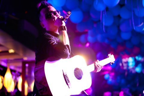 Nhạc sĩ Huy Tuấn hiếm khi cùng cầm mic và guitar một lúc