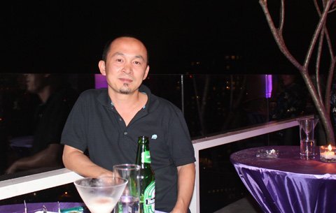 Trong khi đó nhạc sĩ Quốc Trung ngồi thưởng thức âm nhạc ngoài ban công tầng 19