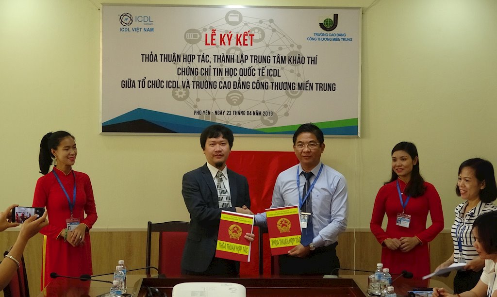 Lễ ký kết thỏa thuận hợp tác thành lập Trung tâm khảo thí ICDL giữa trường Cao đẳng Công Thương Miền Trung với Tổ chức ICDL Việt Nam được tổ chức sáng ngày 23/4/2019 tại Phú Yên. |
